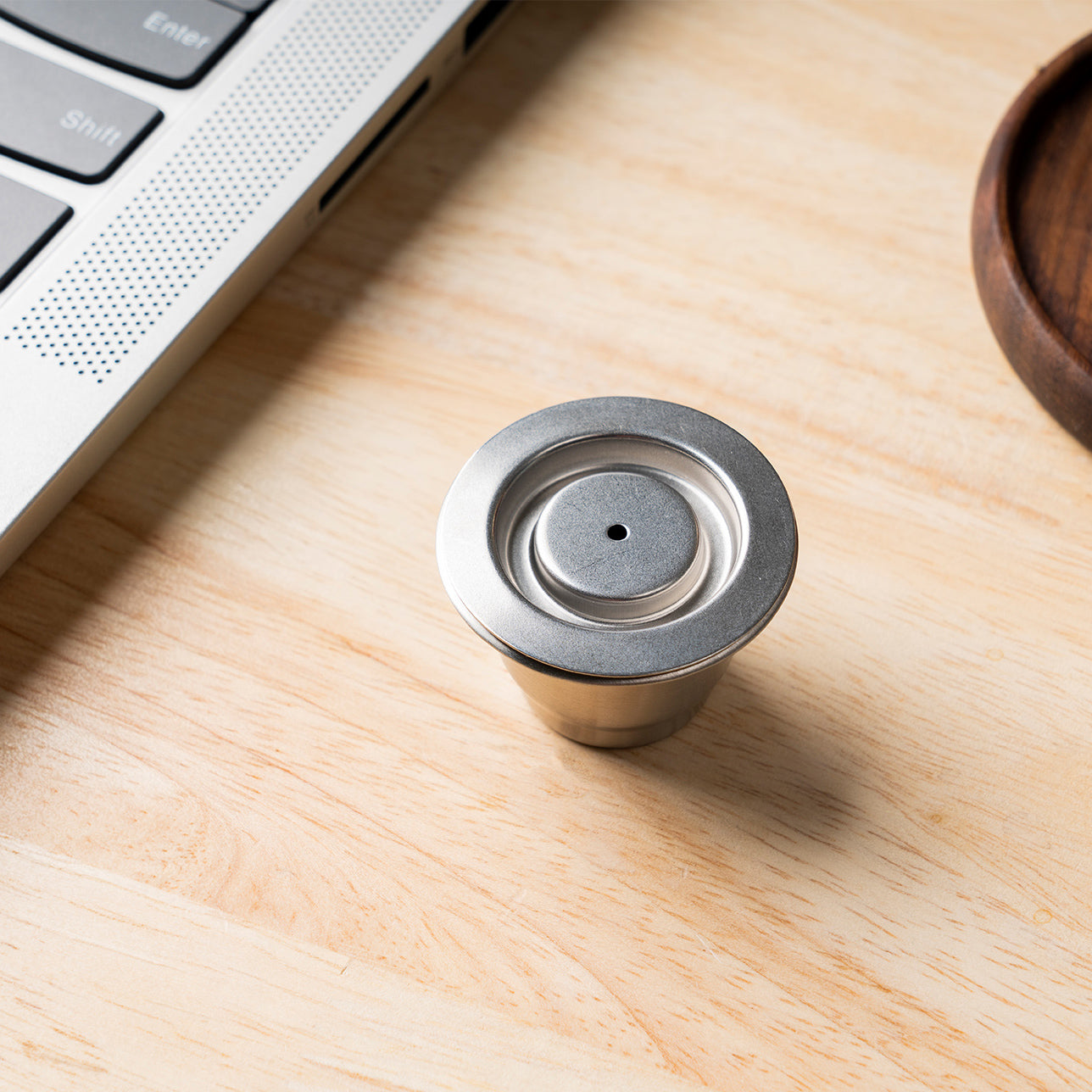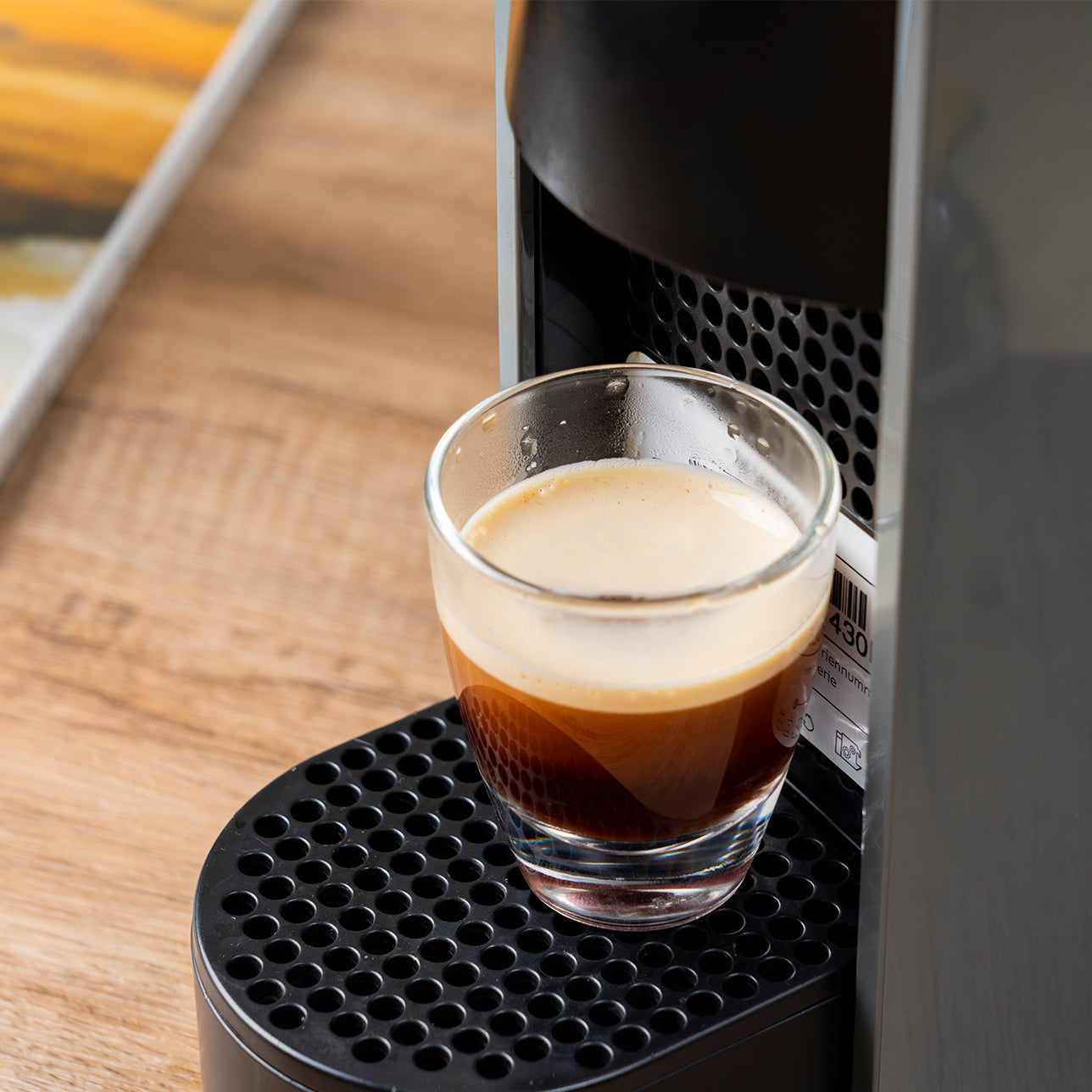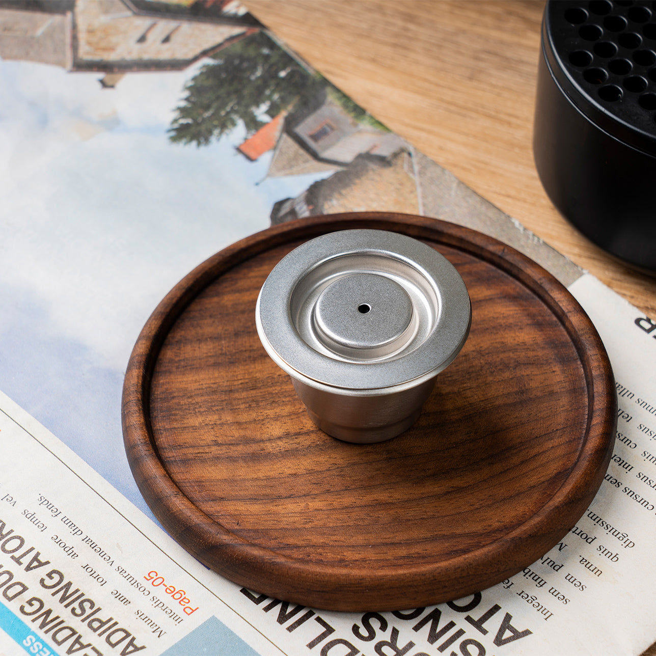 - Press coffee capsule with the tamper properly.