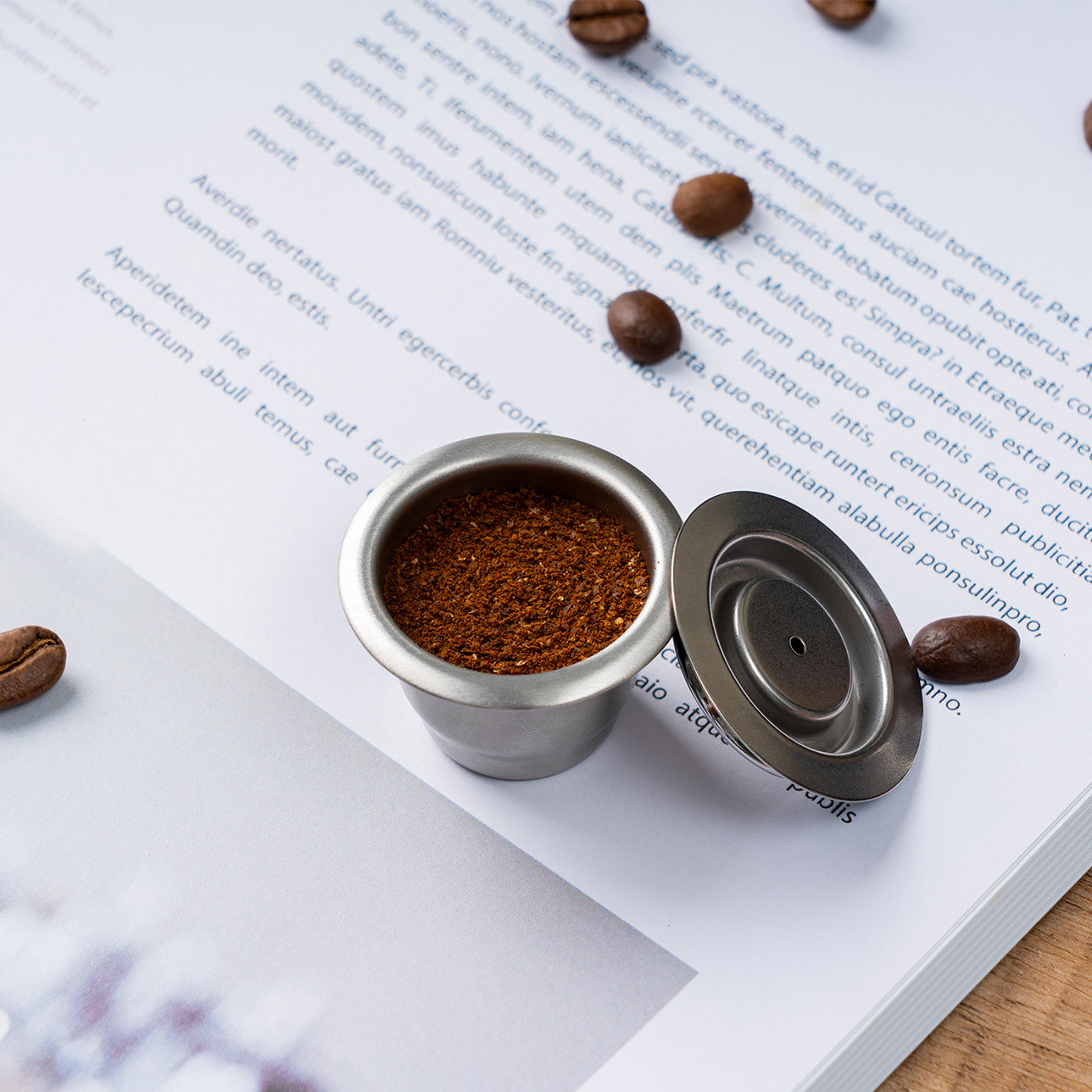 - Use the spoon to fill the capsule with the coffee you like.